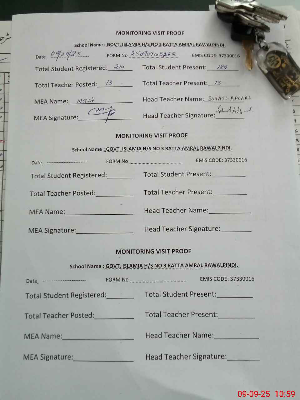 | EMIS Code: 37330016 | Name of School: GHS ISLAMIA NO. 3 RATTA AMRAL RAWALPINDI | |||