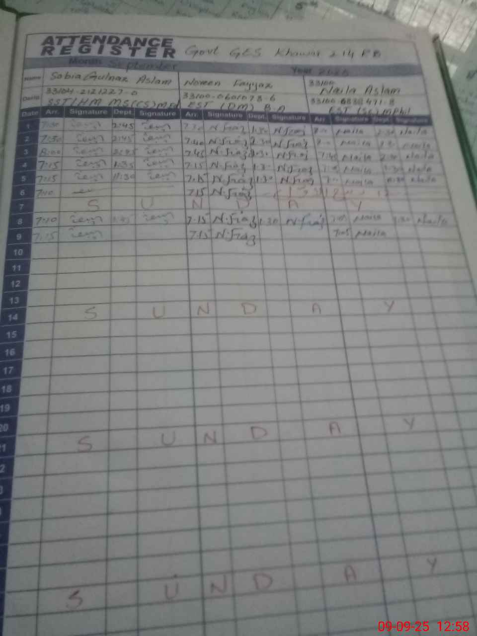 | CNIC | Full Name | Designation | R/C | Absence During Last Calender Month |