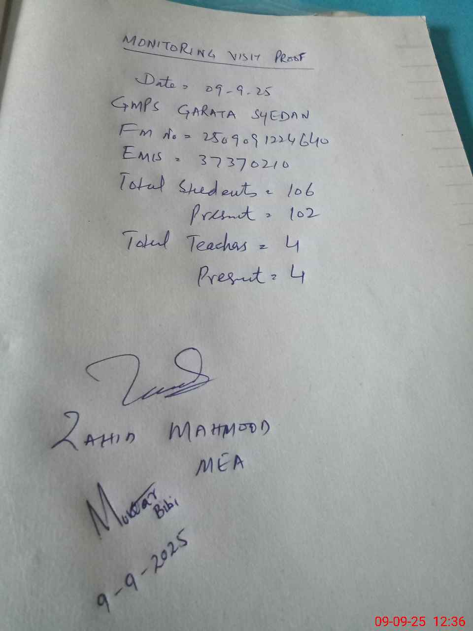 | EMIS Code: 37370210 | Name of School: GMPS GARATA SYEDAN | |||