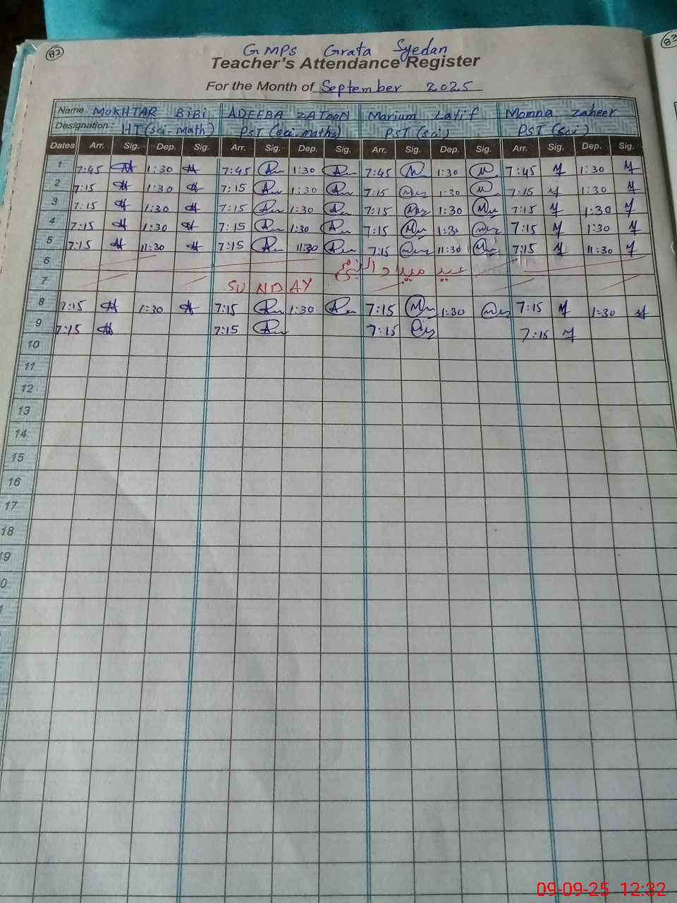 | Name: Mu**** Bi**** Designation: (School Headmaster's/Headmistress's) PST (Sci Math) Phone/Cell Number: 03**** |