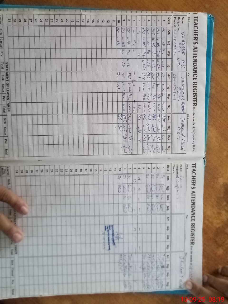 | Name: Wa**** Al**** Designation: (School Headmaster's/Headmistress's) PST Phone/Cell Number: 03**** |