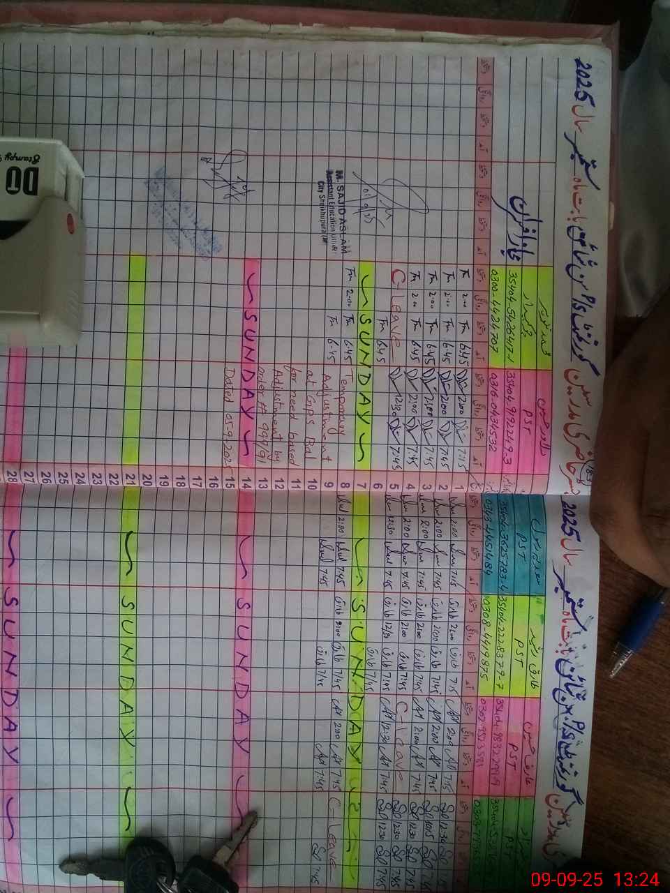 | Name: AS**** ZU**** Designation: (School Headmaster's/Headmistress's) PST Phone/Cell Number: 03**** |