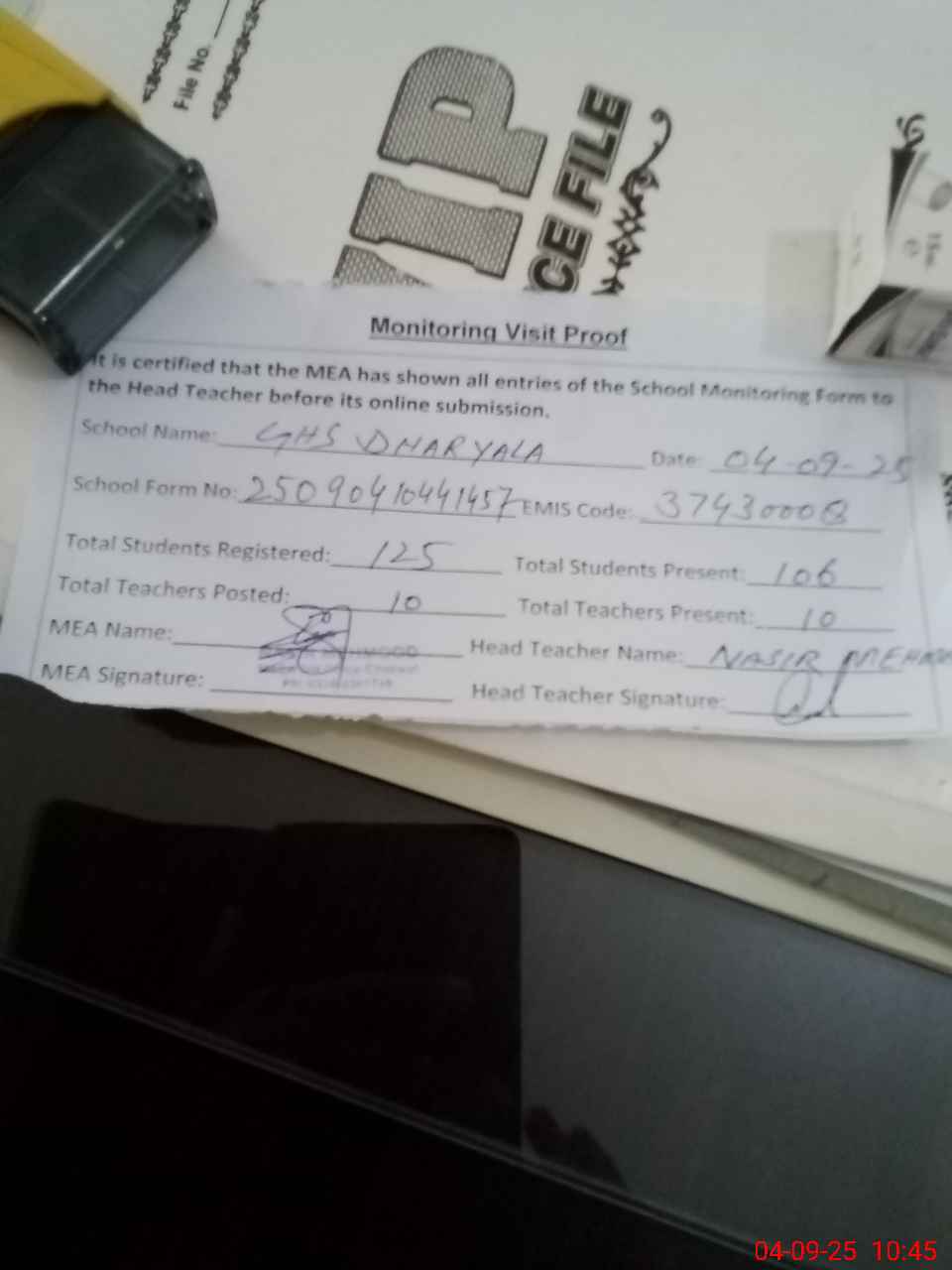 | EMIS Code: 37430008 | Name of School: GHS DHARIYALA KAHOON | |||