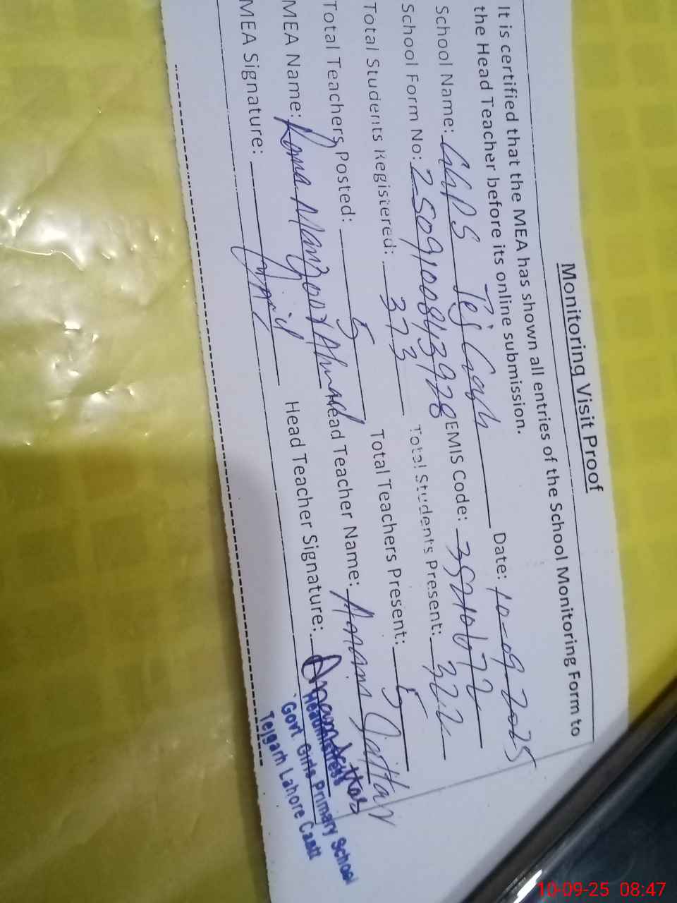 | EMIS Code: 35210672 | Name of School: GGPS TEJ GARH | |||