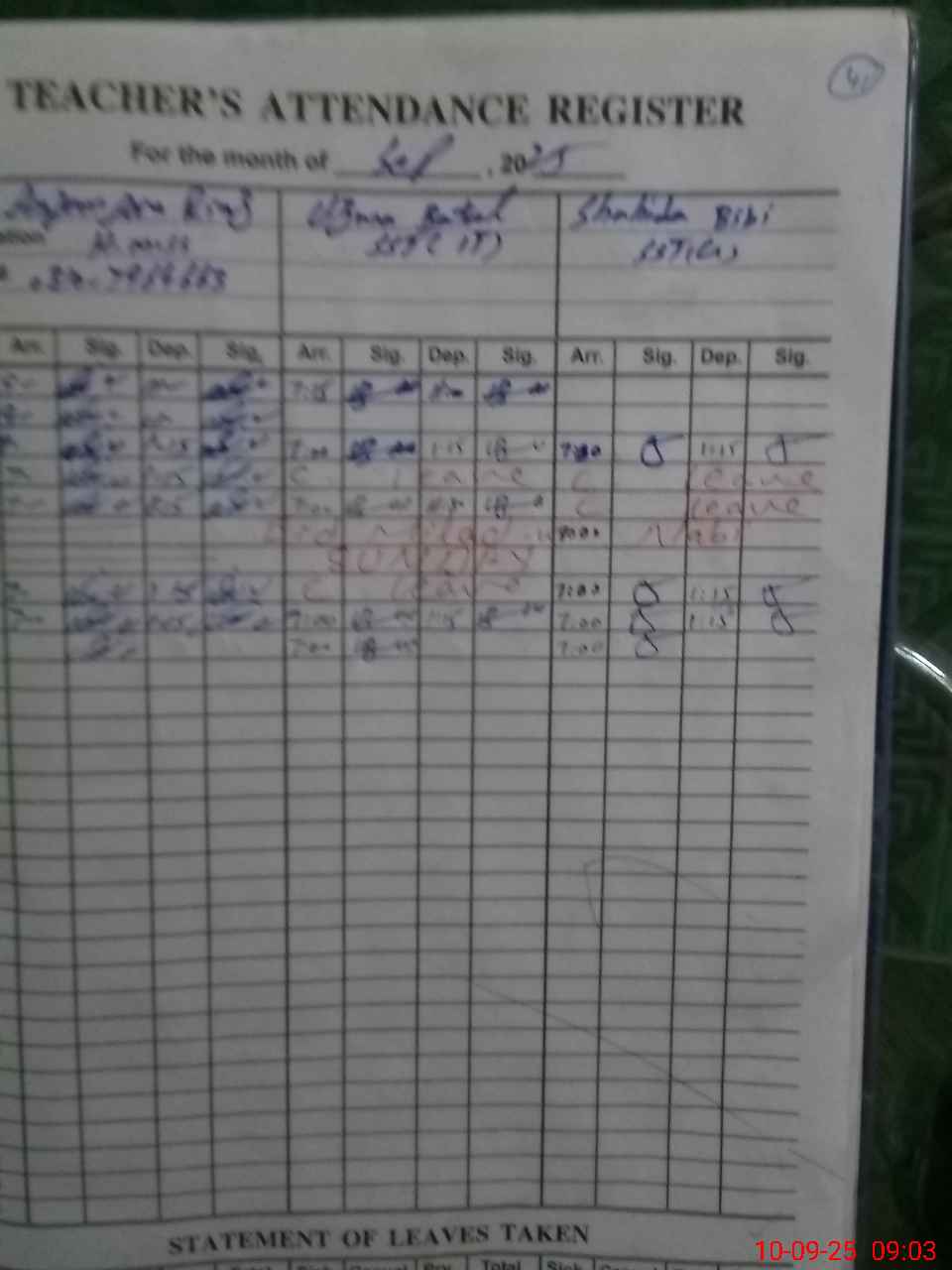 | Leave | Duty | Absent | Maternity | Medical | Ex- Pak |