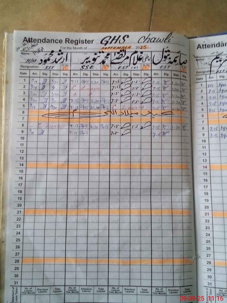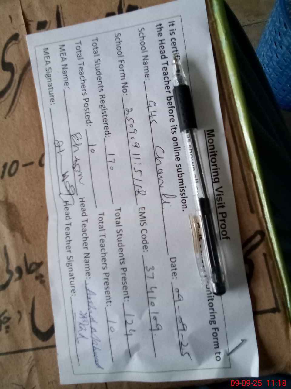 | Attendance Register | Head Teacher | MEA with School | Visit Proof |
