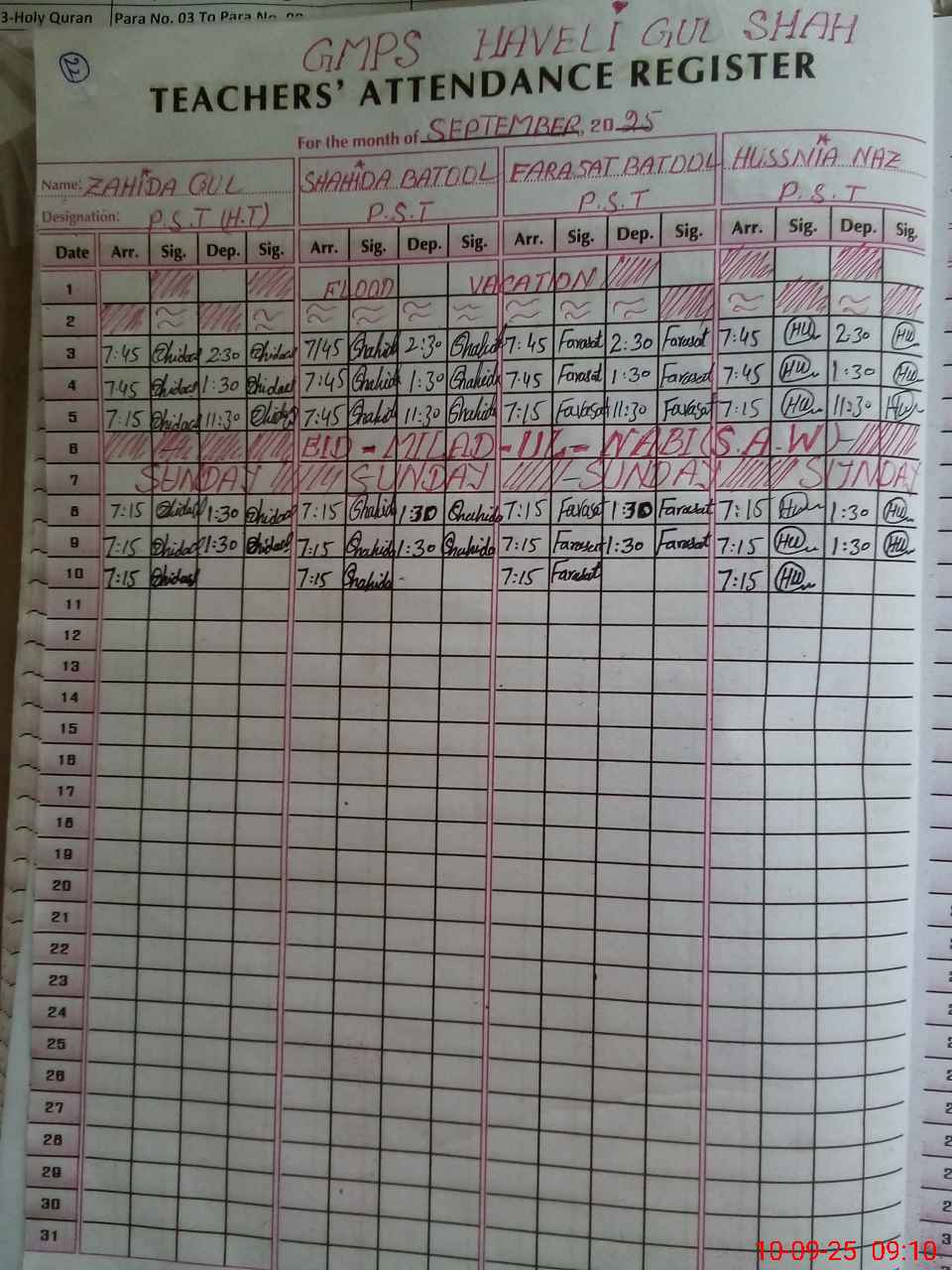 | Name: ZA**** GU**** Designation: (School Headmaster's/Headmistress's) PST Phone/Cell Number: 03**** |