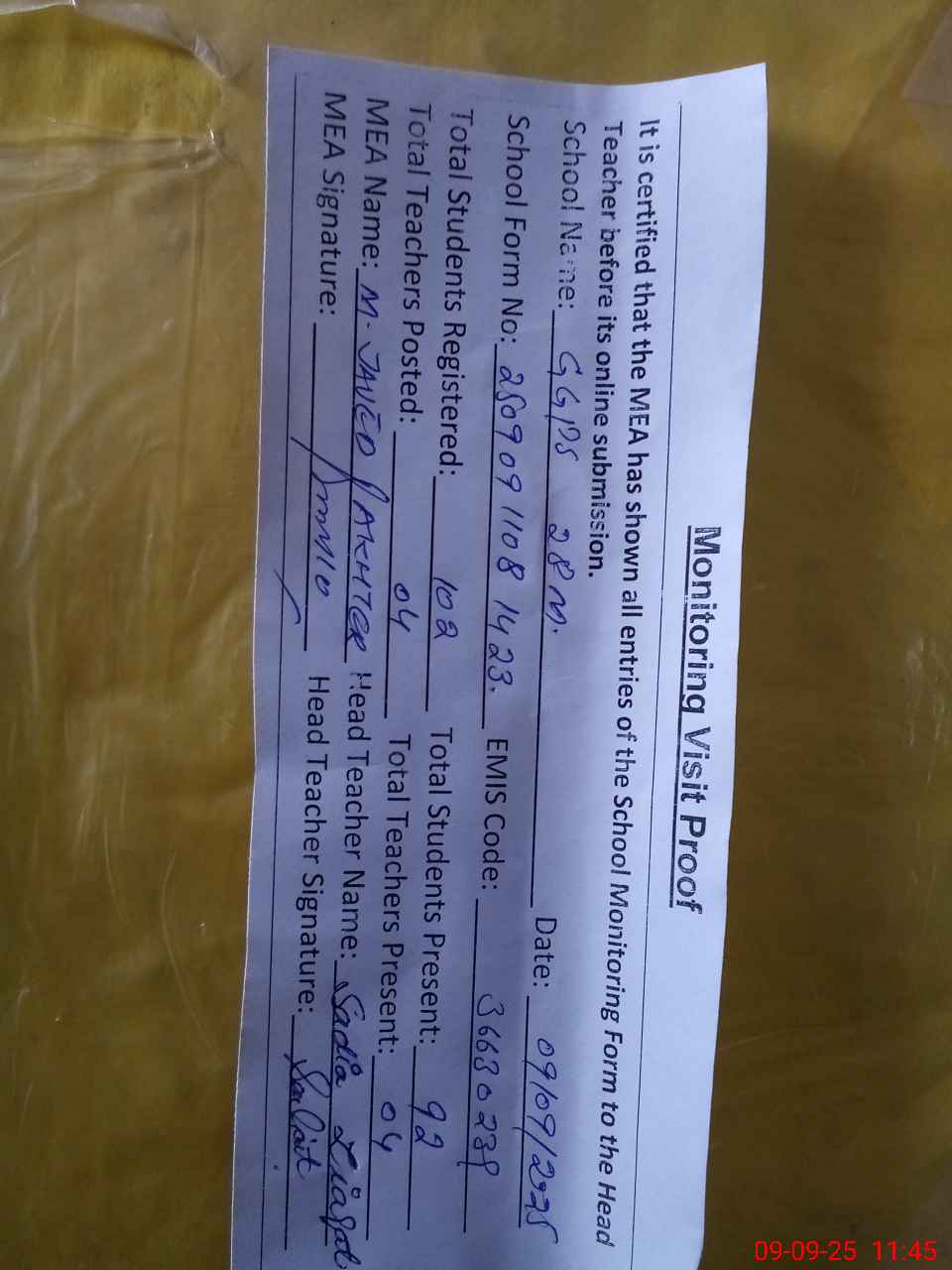 | EMIS Code: 36630239 | Name of School: GGPS 28M COLONY | |||