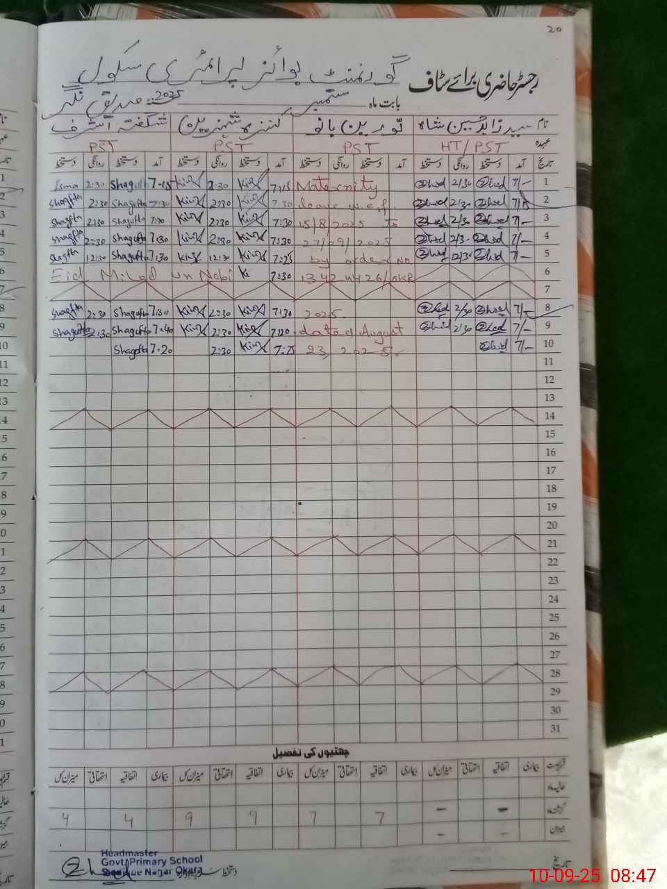 | Name: SY**** ZA**** HU**** SH**** Designation: (School Headmaster's/Headmistress's) PST Phone/Cell Number: 03**** |