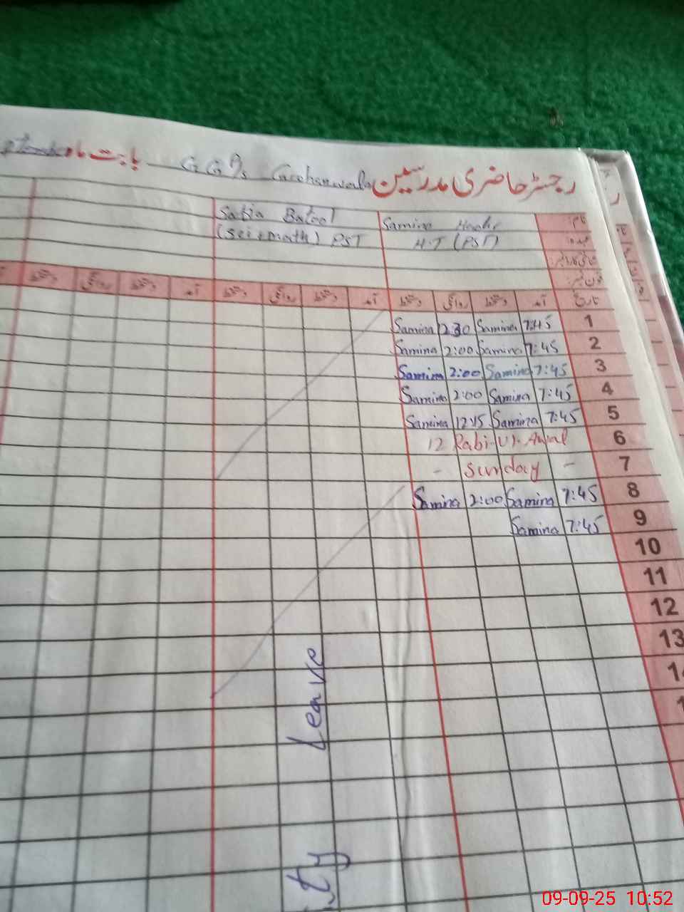 | 35**** | Sa**** Ba**** | PST | Regular | 0 | 0 | 0 | 0 | 0 | 0 | 0 | 0 | 0 | Maternity |