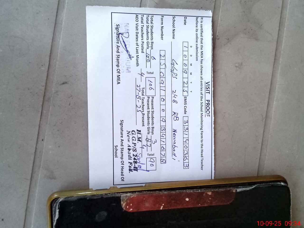 | EMIS Code: 33140363 | Name of School: GGPS CHAK 248 RB NEW ABADI | |||