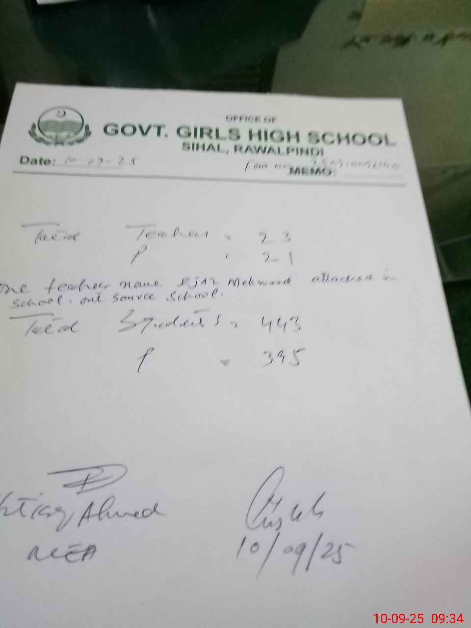 | EMIS Code: 37330105 | Name of School: GGHS SIHAL | |||