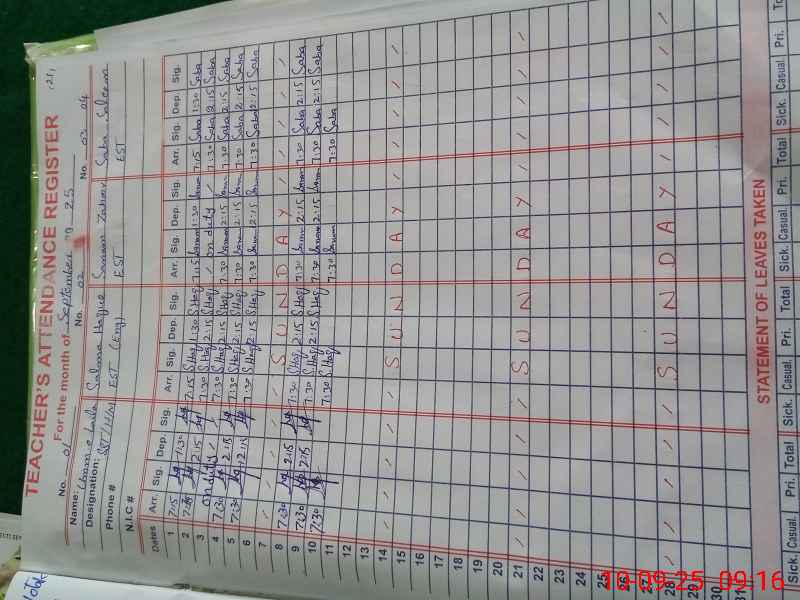 | 38**** | Za**** | NQ | Regular | 0 | 0 | 0 | 0 | 0 | 0 | 0 | 0 | 0 | Absent (Un-Authorized) |
