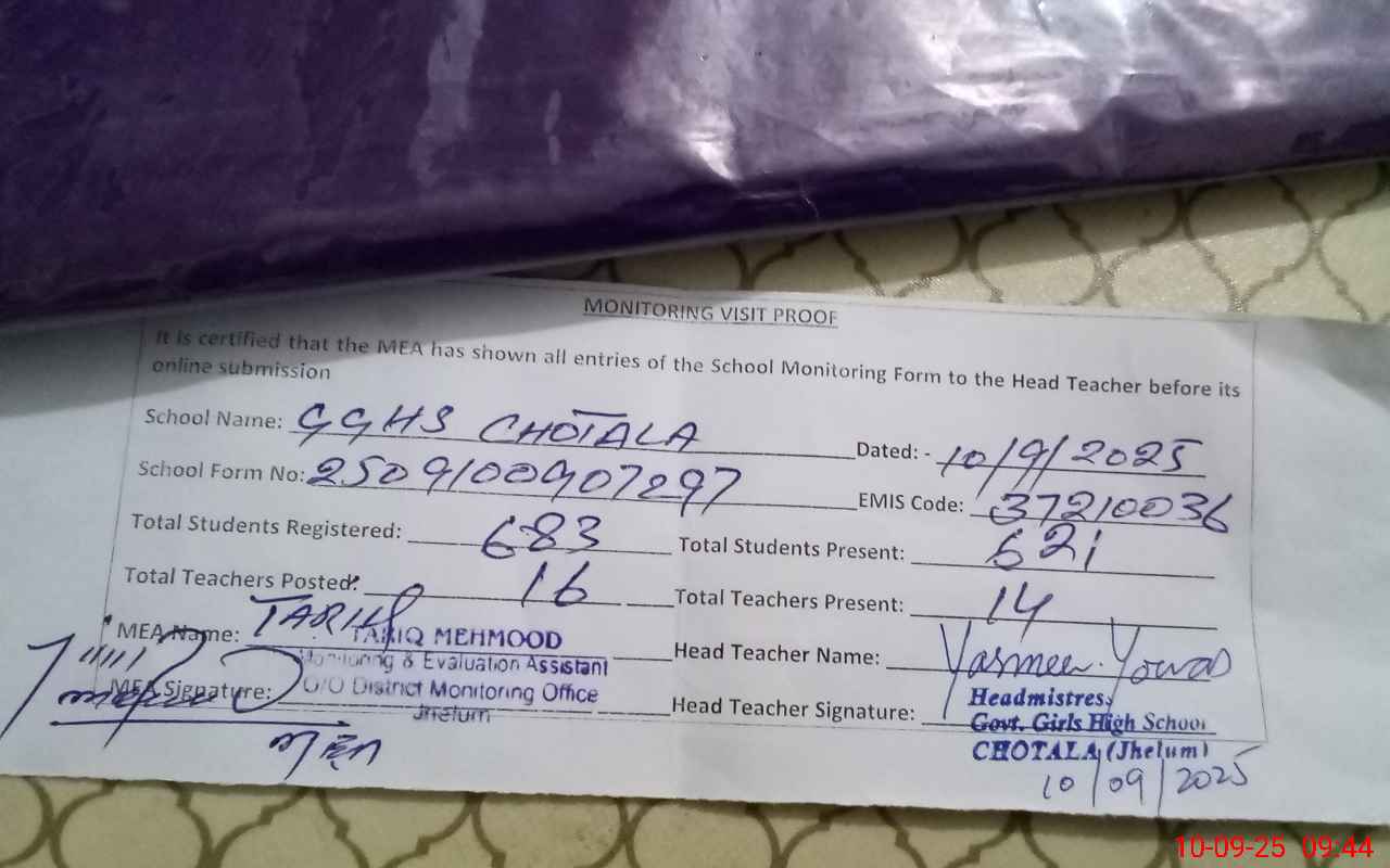| EMIS Code: 37210036 | Name of School: GGHS CHOTALA | |||