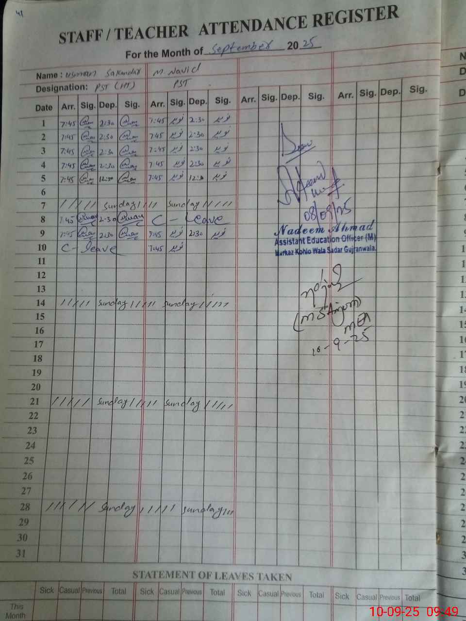 | Name: US**** SA**** Designation: (School Headmaster's/Headmistress's) PST Phone/Cell Number: 03**** |