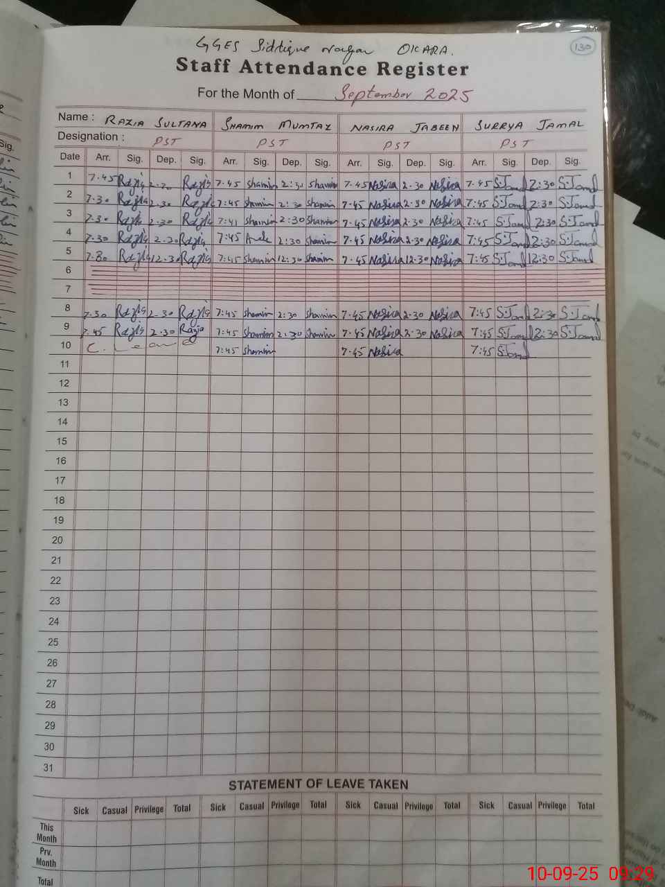 | 35**** | Ra**** Su**** | PST | Regular | 0 | 0 | 0 | 0 | 0 | 0 | 0 | 0 | 0 | Casual |