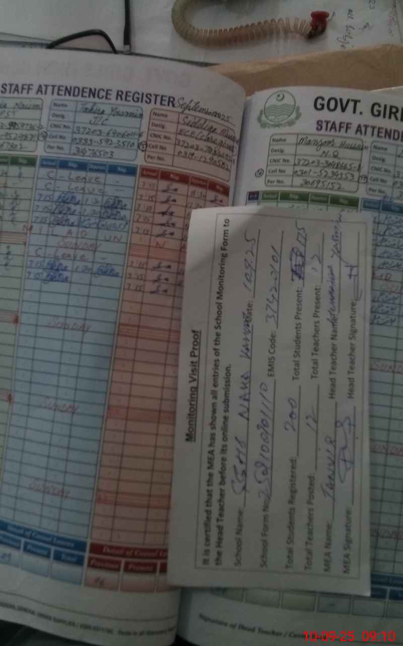 | Attendance Register | Head Teacher | MEA with School | Visit Proof |
