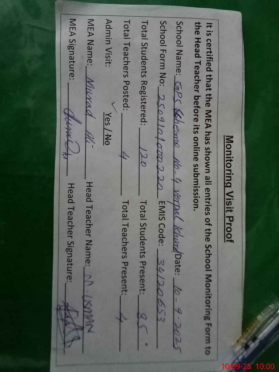 | EMIS Code: 34120653 | Name of School: GPS SCHEME NO.04 VERPAL KHURD | |||
