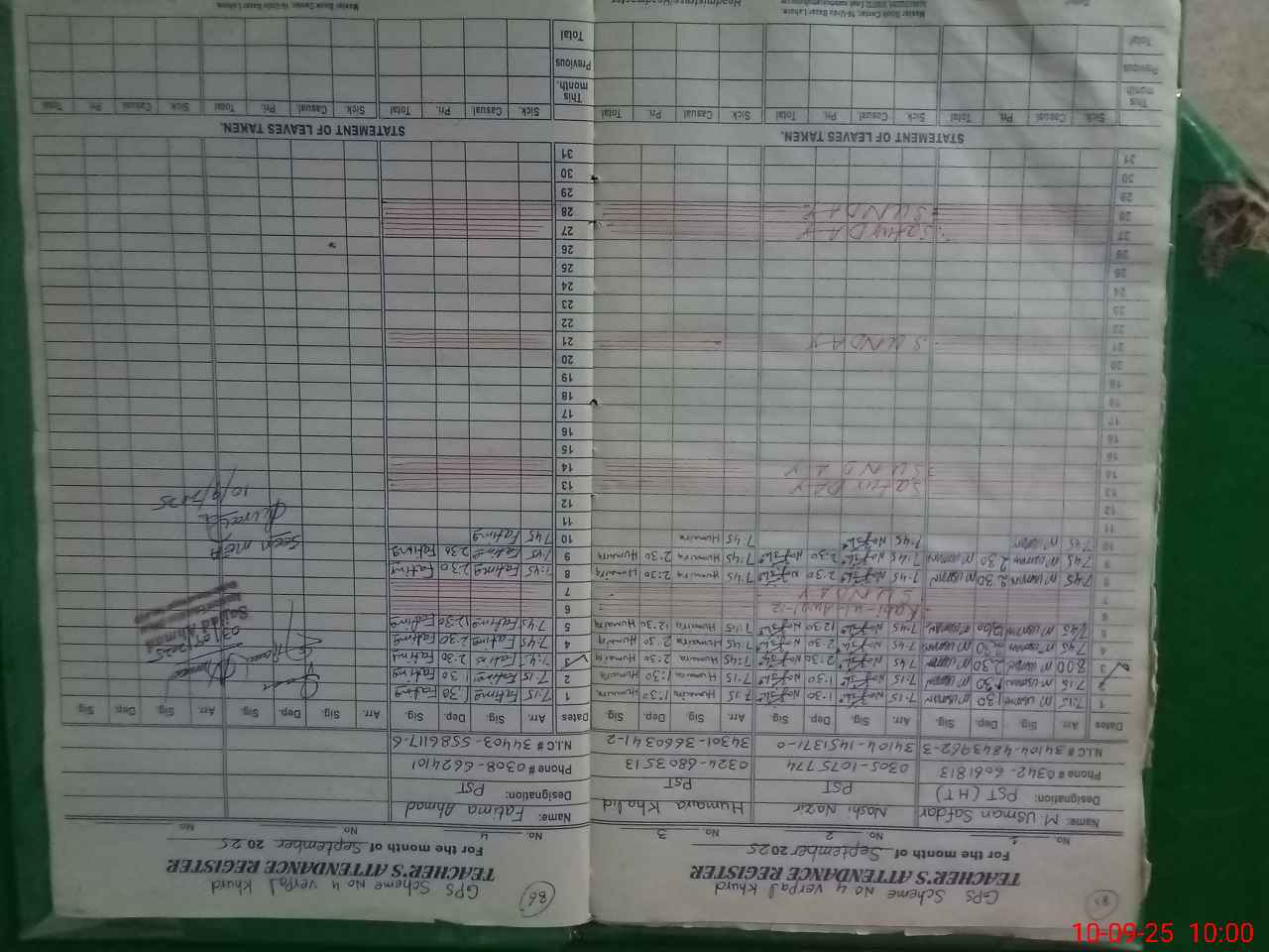 | Monitoring Date: 10-09-2025 | Start Time: 10-09-2025 09:30 AM | End Time: 10-09-2025 10:02 AM | Name of MEA: W-**** Al**** | |