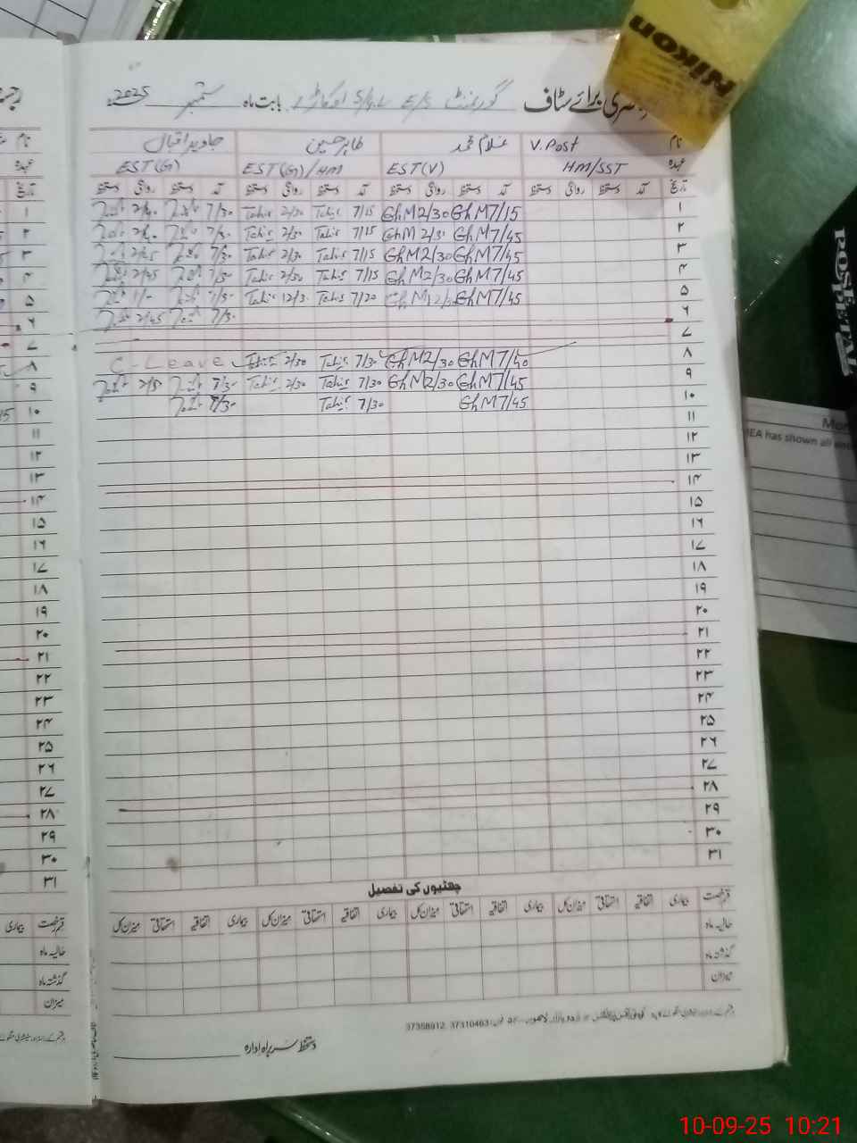 | CNIC | Full Name | Designation | R/C | Absence During Last Calender Month |