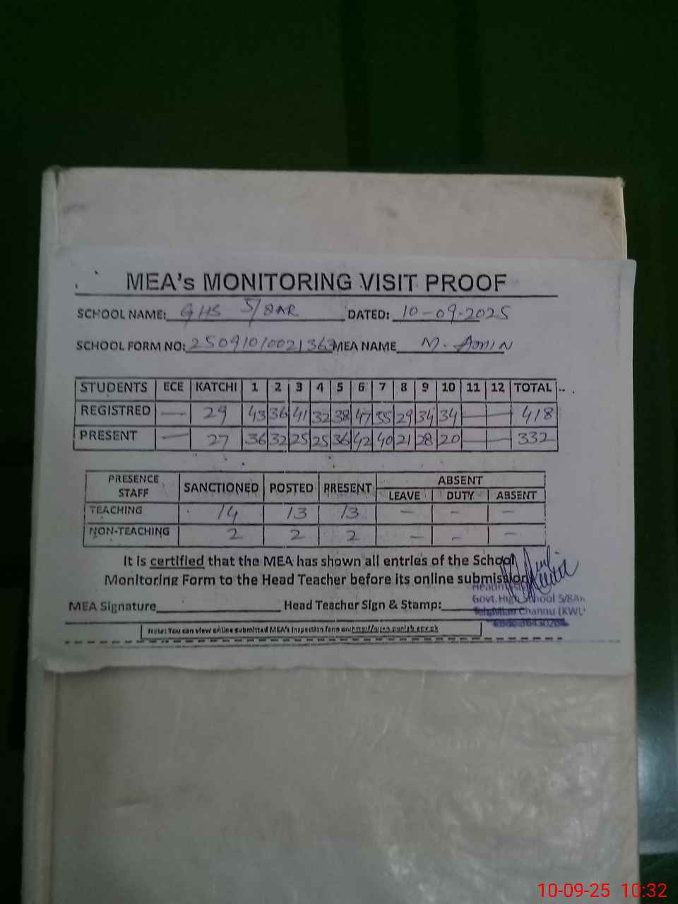 | EMIS Code: 36430264 | Name of School: GHS 5/8-AR, TULAMBA | |||
