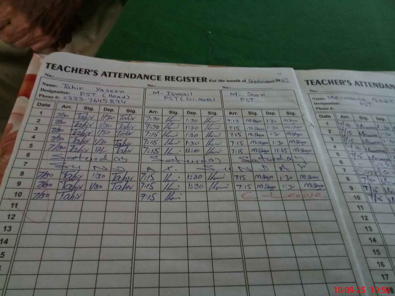 | Name: Ta**** Ya**** Designation: (School Headmaster's/Headmistress's) PST Phone/Cell Number: 03**** |