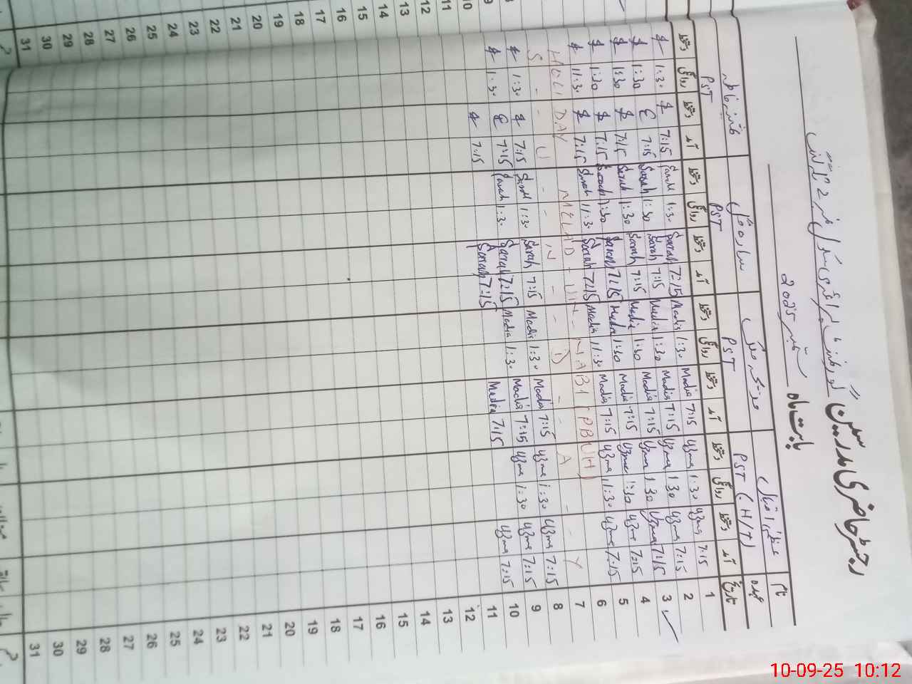 | Monitoring Date: 10-09-2025 | Start Time: 10-09-2025 09:45 AM | End Time: 10-09-2025 10:14 AM | Name of MEA: MU**** AQ**** | |
