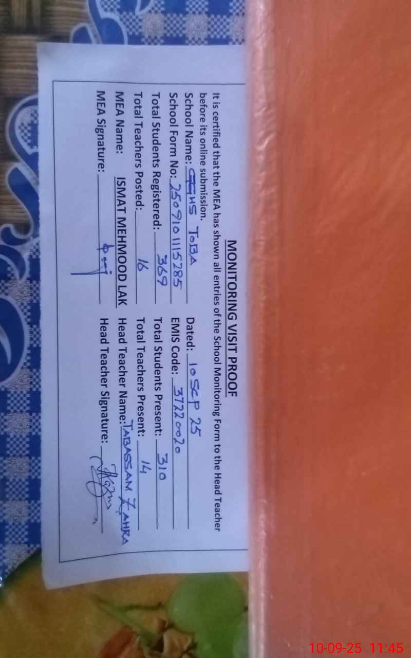 | Attendance Register | Head Teacher | MEA with School | Visit Proof |