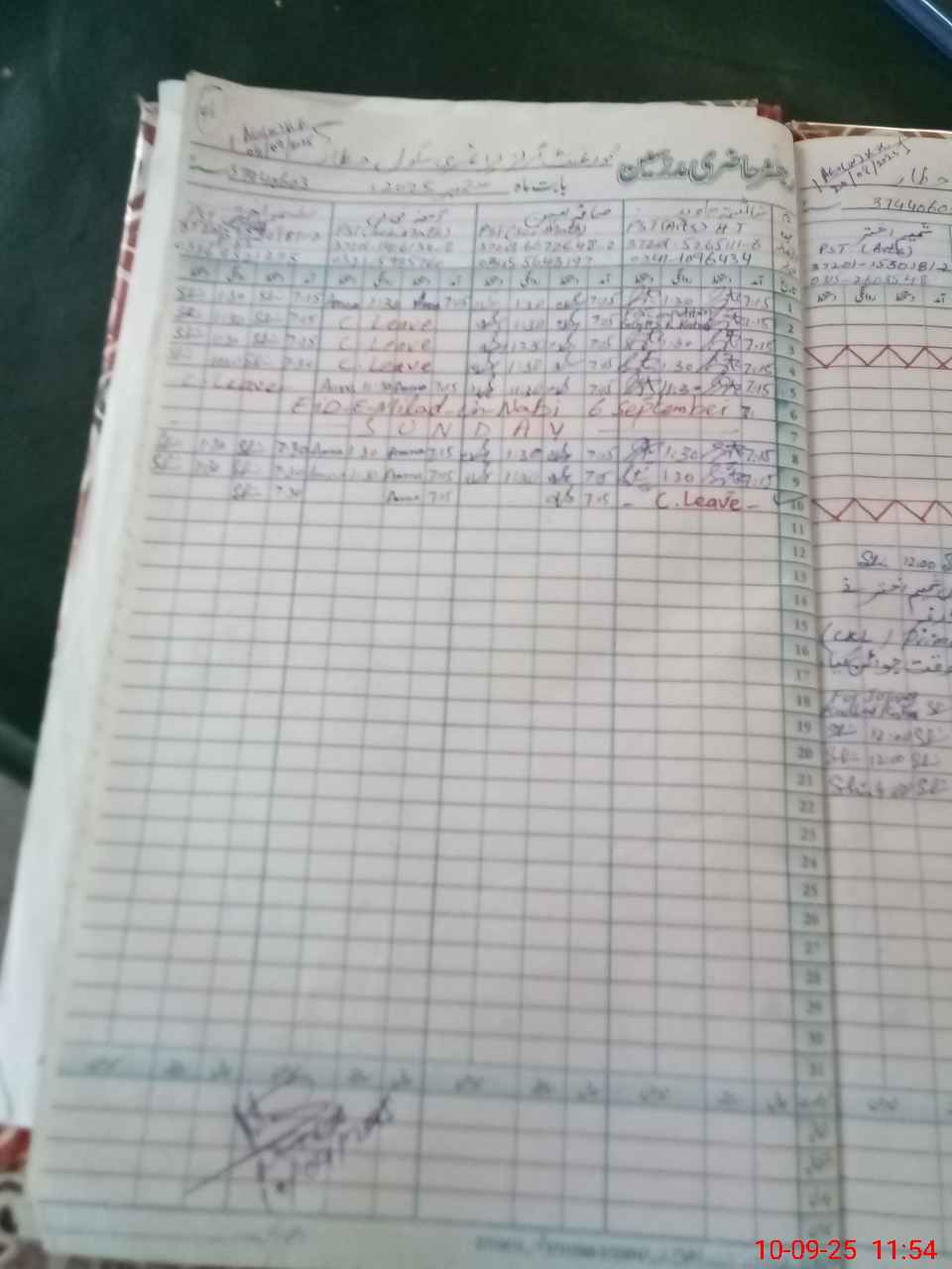 | CNIC | Full Name | Designation | R/C | Absence During Last Calender Month |