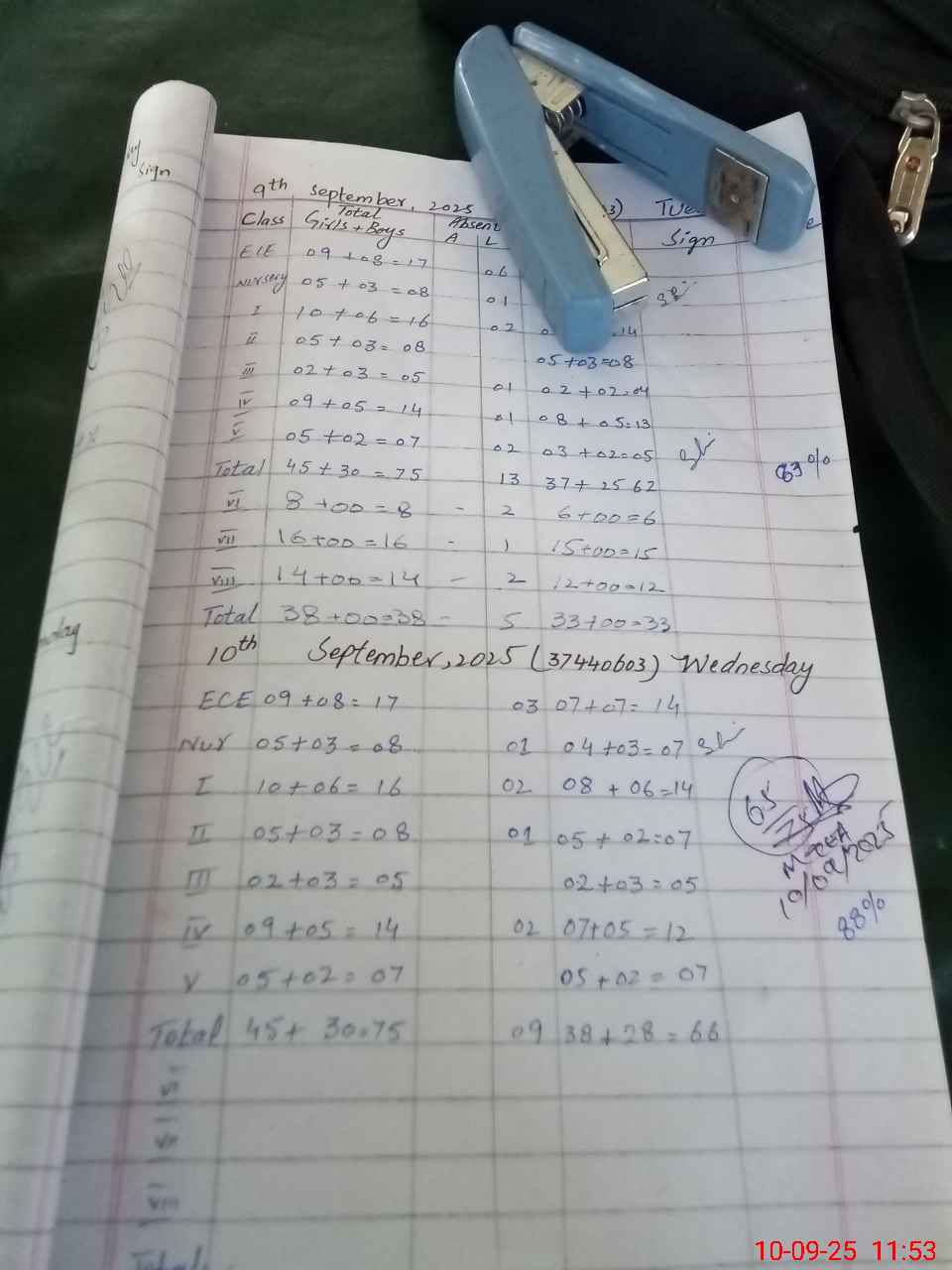 | No. of Students Present - Female | 7 | 0 | 4 | 8 | 5 | 2 | 7 | 4 | 37 | |||||||