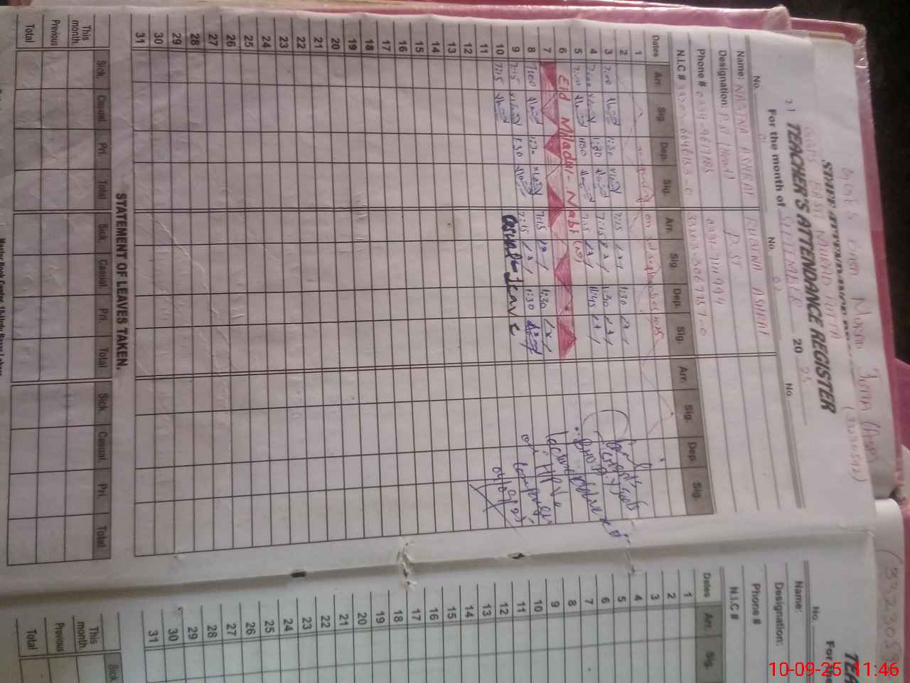 | Name: NA**** AS**** Designation: (School Headmaster's/Headmistress's) PST Phone/Cell Number: 03**** |
