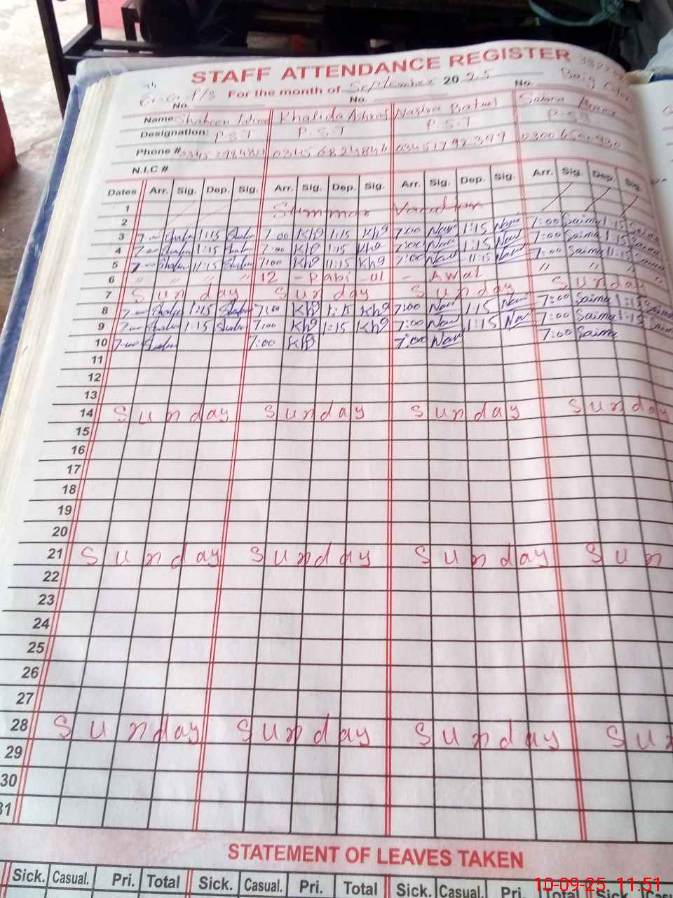 | Name: SH**** FA**** Designation: (School Headmaster's/Headmistress's) PST Phone/Cell Number: 03**** |