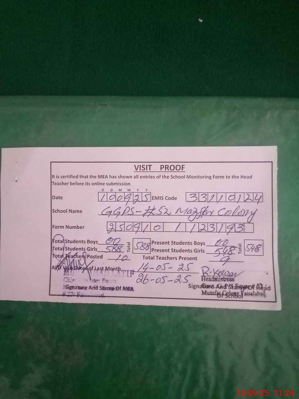 | EMIS Code: 33110124 | Name of School: GGES MURABBA NO. 52 ST. NO 21 | |||