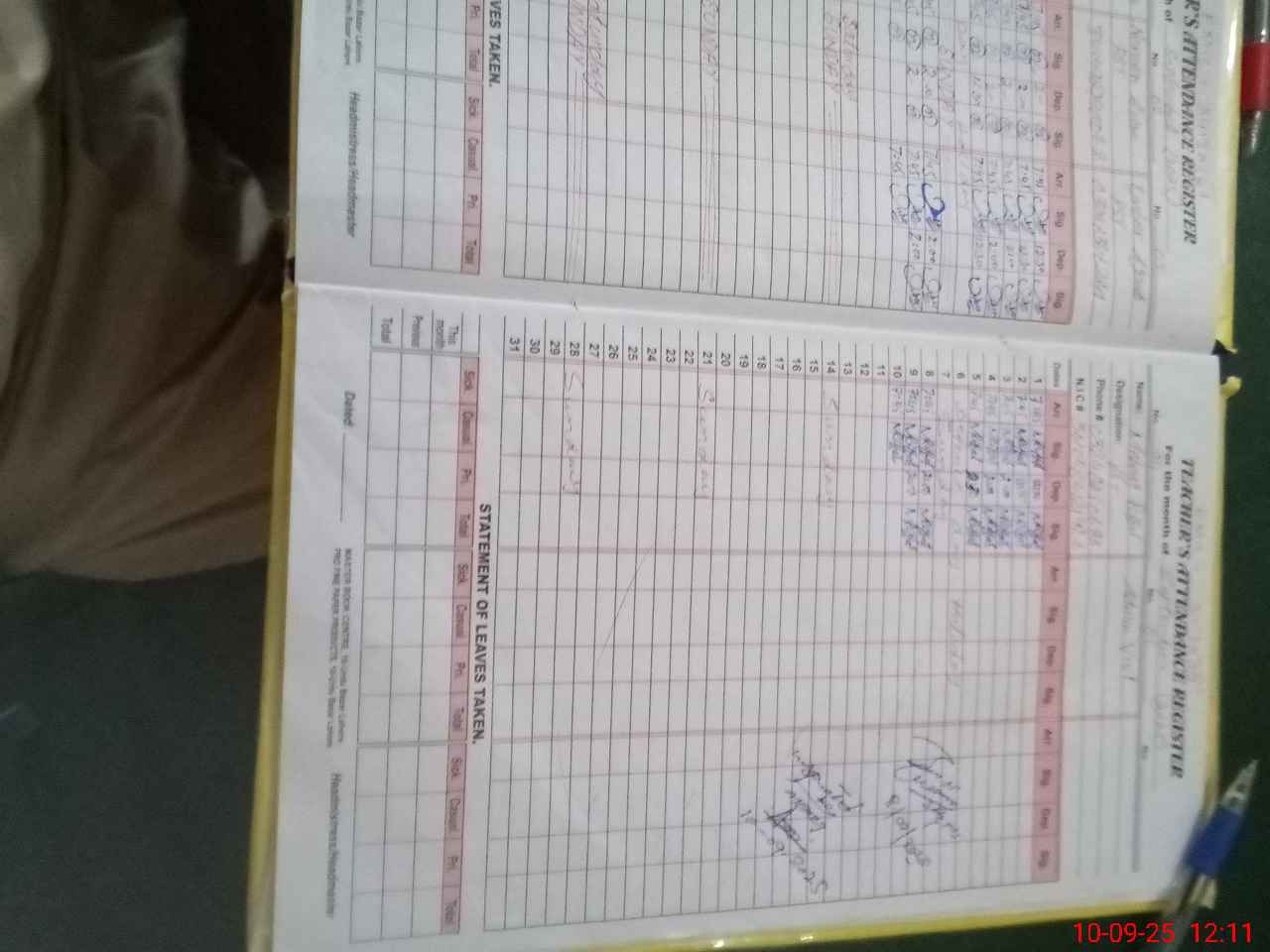 | CNIC | Full Name | Designation | R/C | Absence During Last Calender Month |