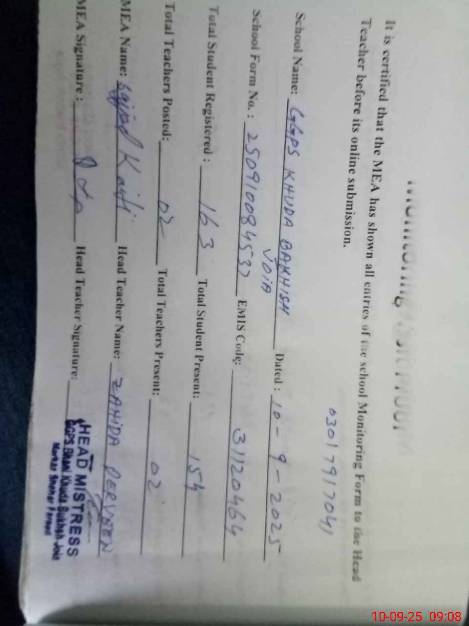 | EMIS Code: 31120464 | Name of School: GGPS KHUDA BAKHSH JOIA | |||
