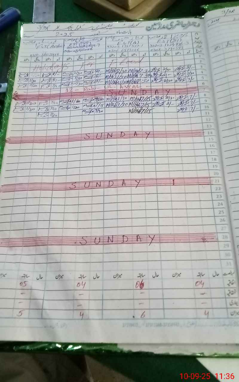 | CNIC | Full Name | Designation | R/C | Absence During Last Calender Month |