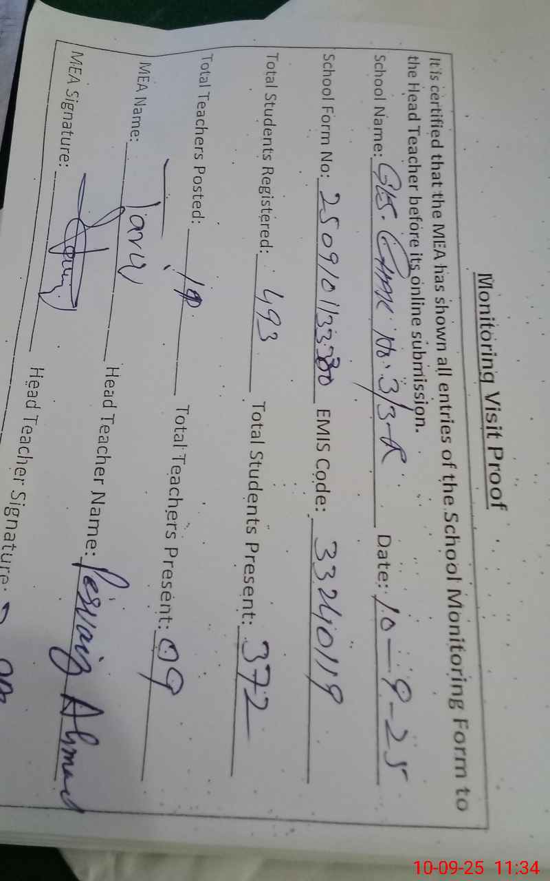 | EMIS Code: 33240119 | Name of School: GES CHAK NO. 3/3-R | |||