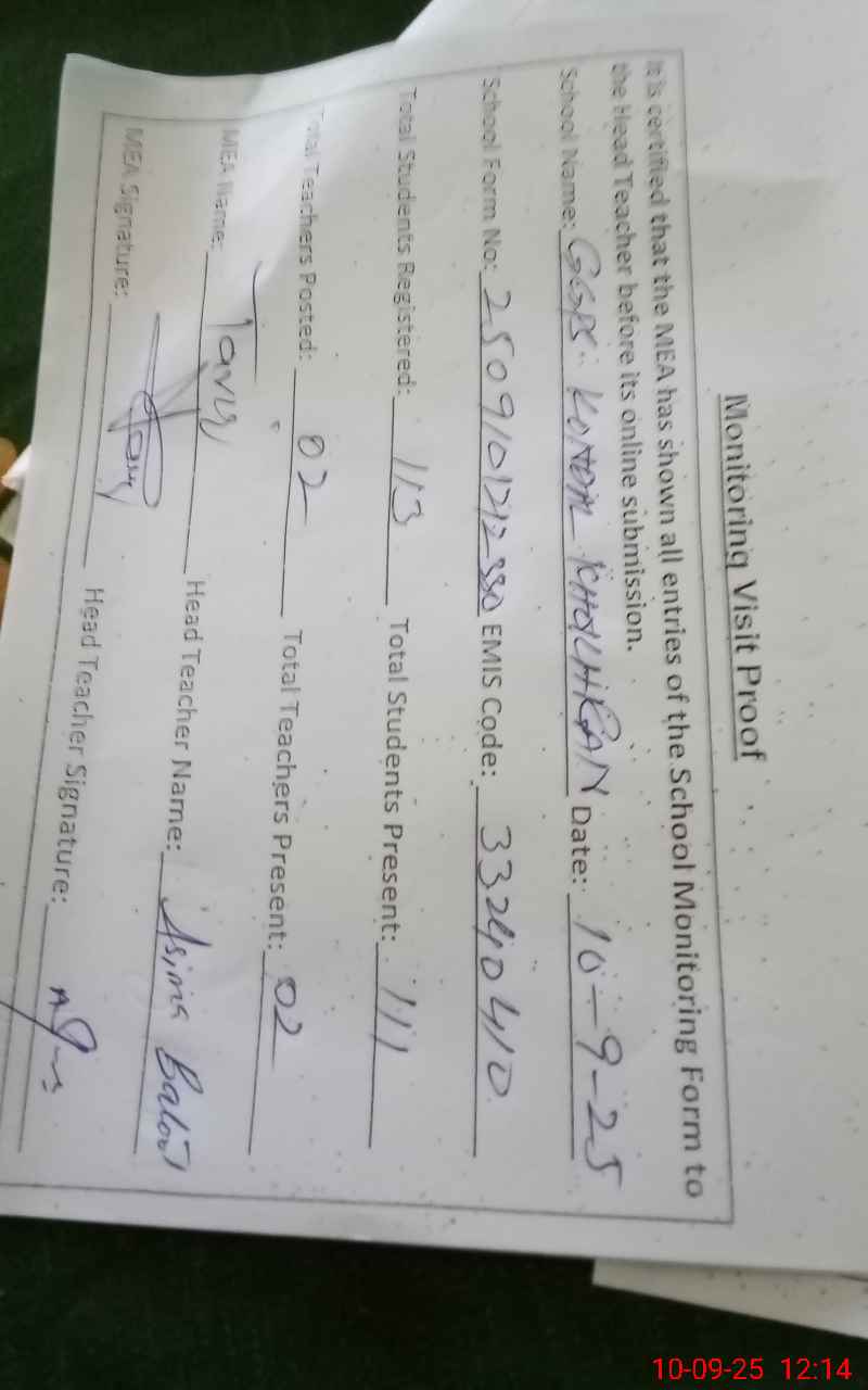 | EMIS Code: 33240410 | Name of School: GGPS KONDAL KHAOKRAN | |||