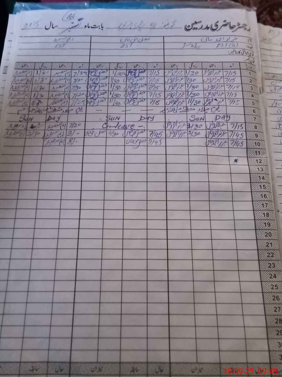 | CNIC | Full Name | Designation | R/C | Absence During Last Calender Month |