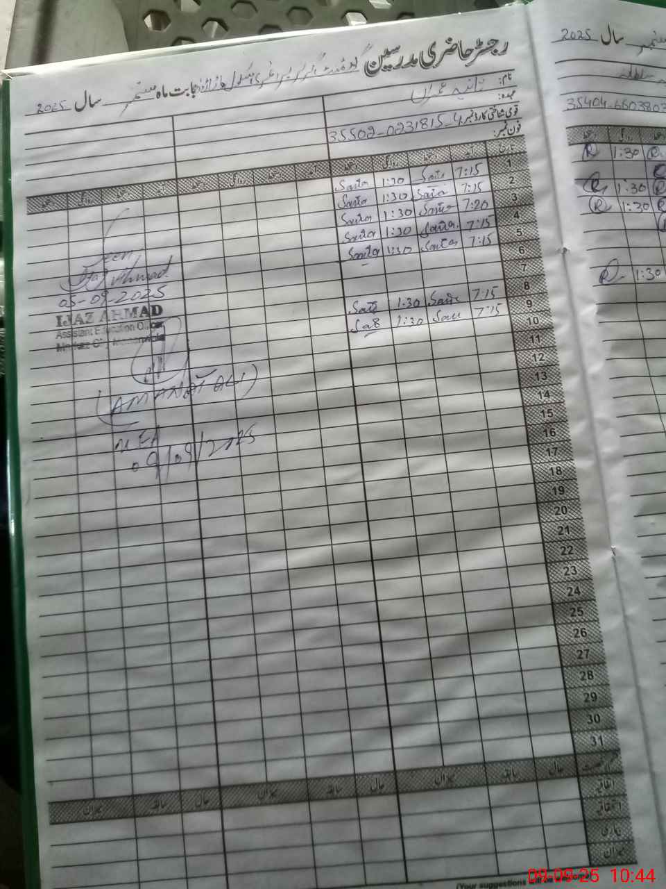 | Name: SA**** KA**** Designation: (School Headmaster's/Headmistress's) PST Phone/Cell Number: 03**** |