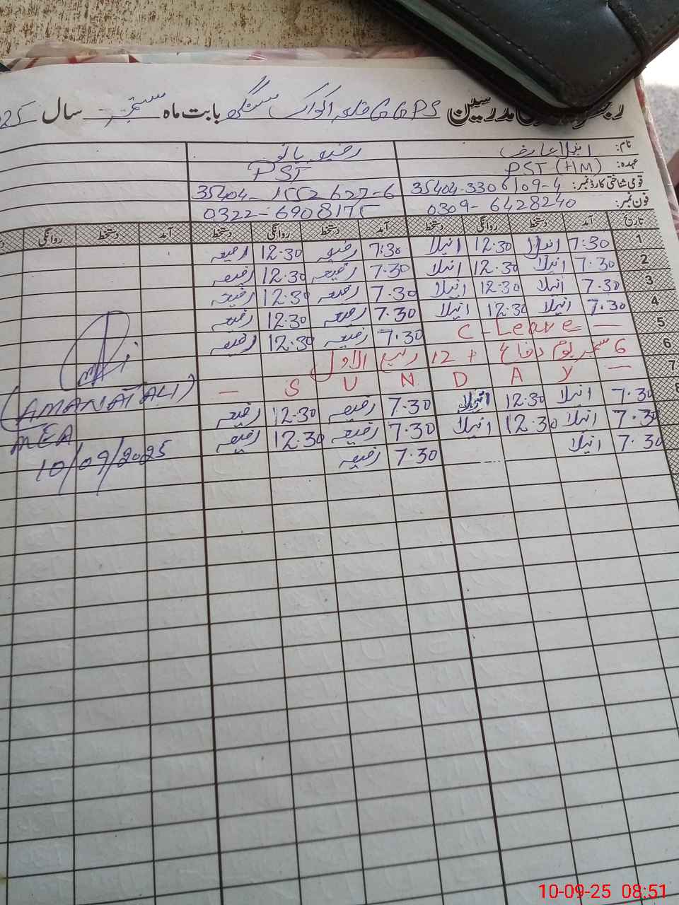| Name: An**** Ar**** Designation: (School Headmaster's/Headmistress's) PST Phone/Cell Number: 03**** |