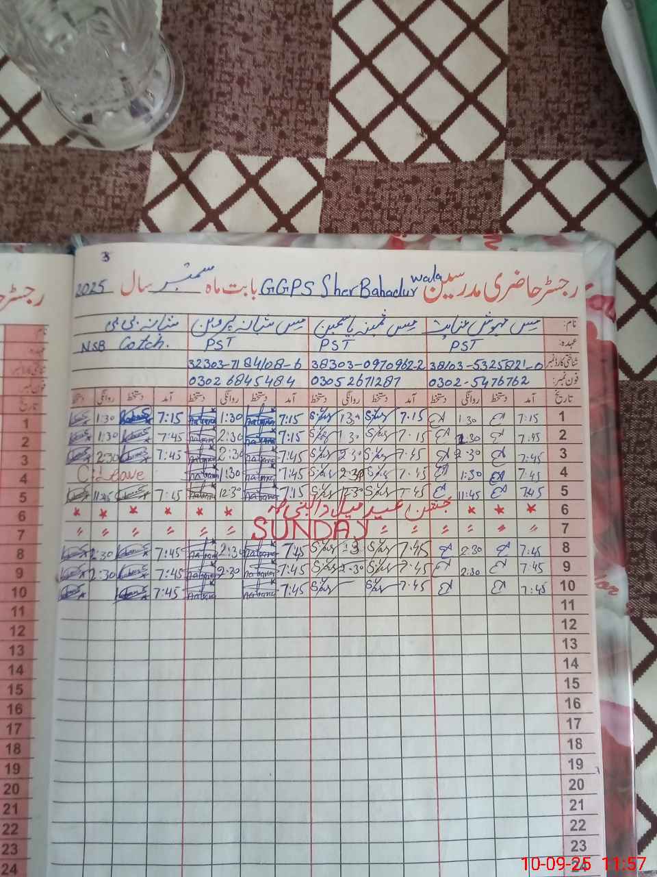 | CNIC | Full Name | Designation | R/C | Absence During Last Calender Month |