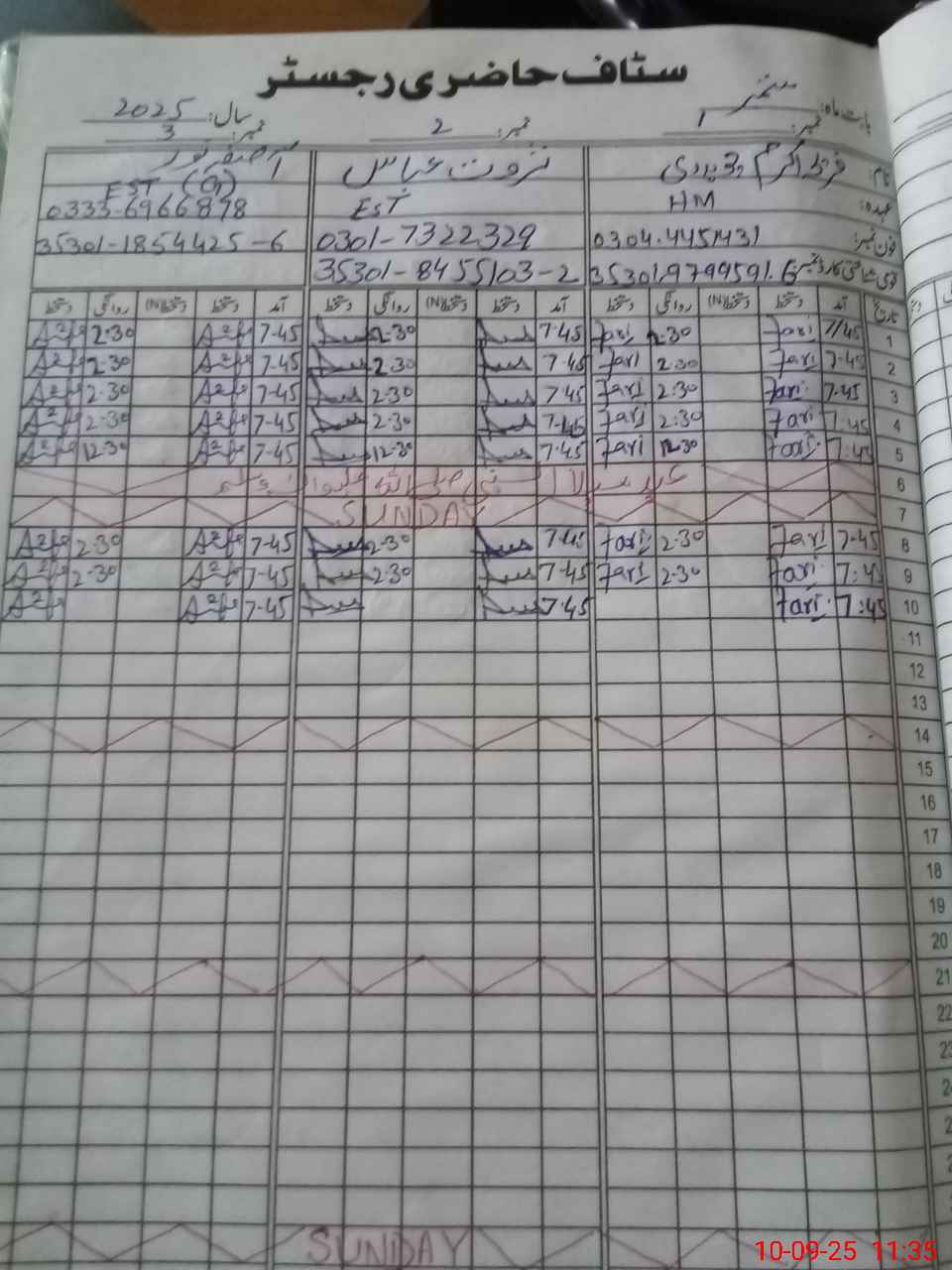 | CNIC | Full Name | Designation | R/C | Absence during last cal. month |