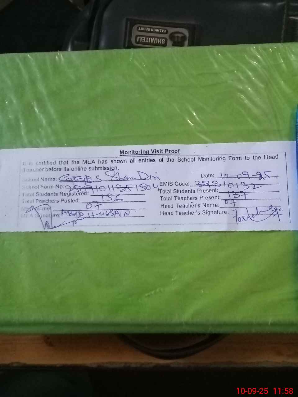 | Attendance Register | Head Teacher | MEA with School | Visit Proof |