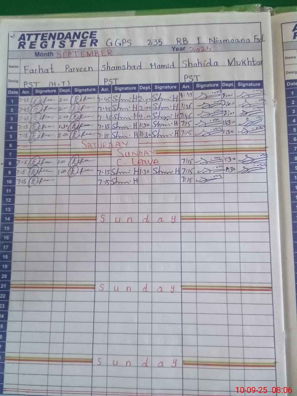 | Monitoring Date: 10-09-2025 | Start Time: 10-09-2025 08:04 AM | End Time: 10-09-2025 08:29 AM | Name of MEA: MU**** TA**** | |