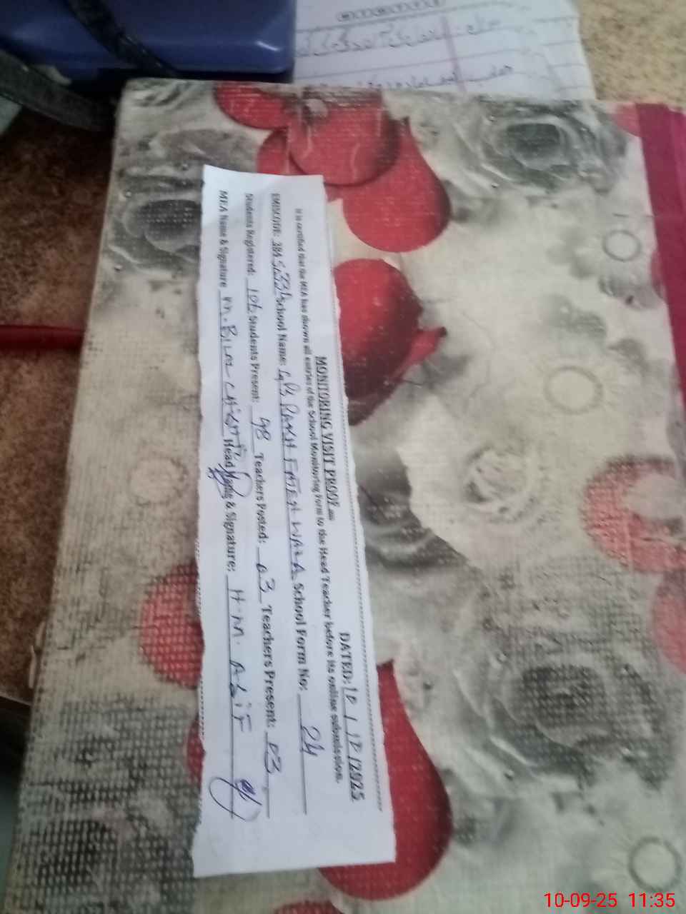 | Attendance Register | Head Teacher | MEA with School | Visit Proof |