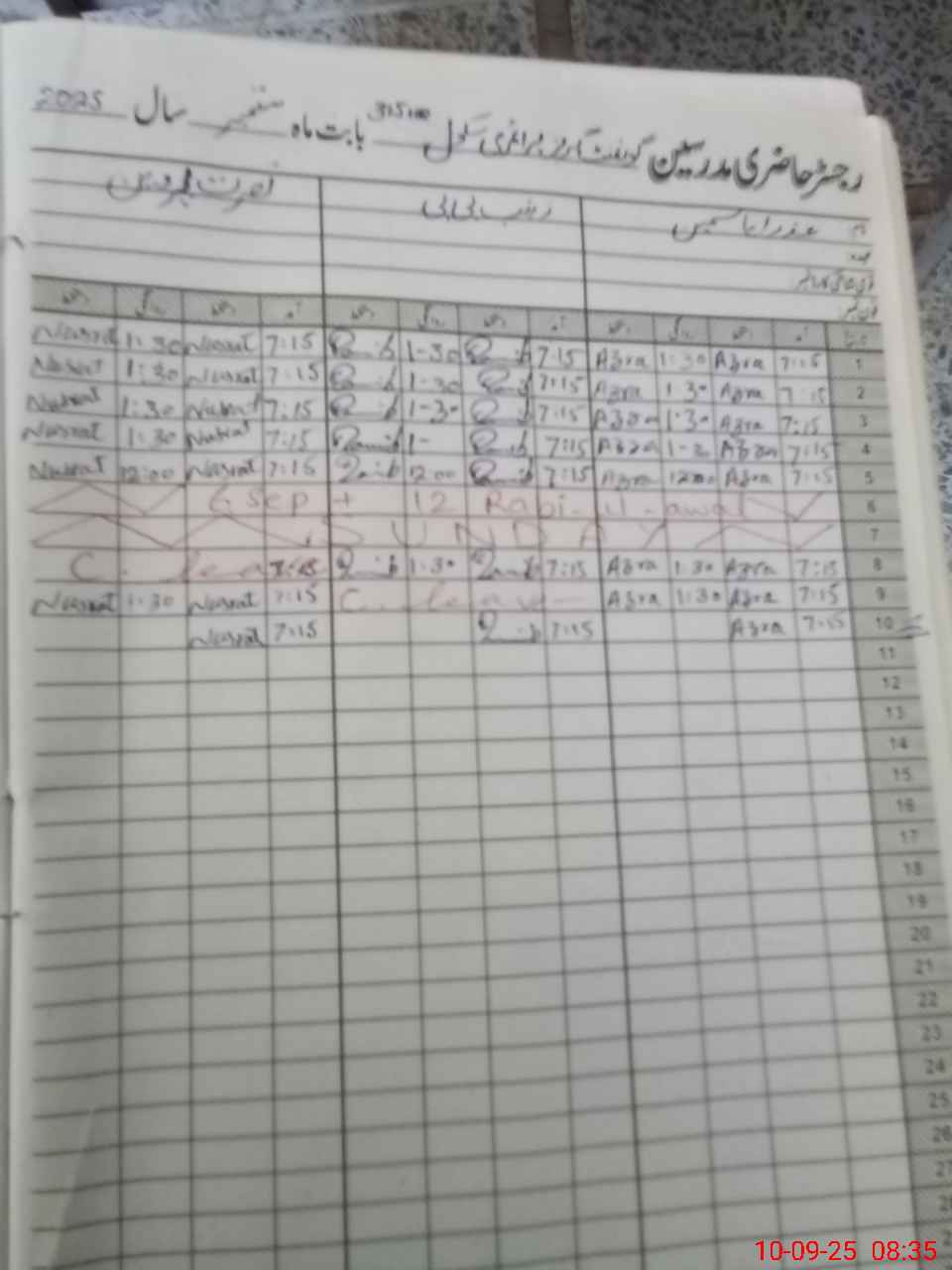 | CNIC | Full Name | Designation | R/C | Absence During Last Calender Month |