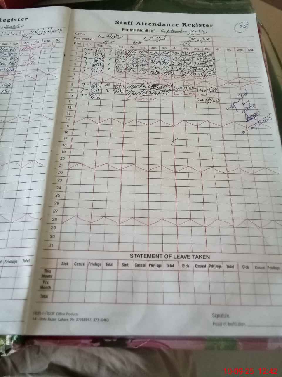 | Name: IF**** AH**** NA**** Designation: (School Headmaster's/Headmistress's) HEADMASTER Phone/Cell Number: 03**** |