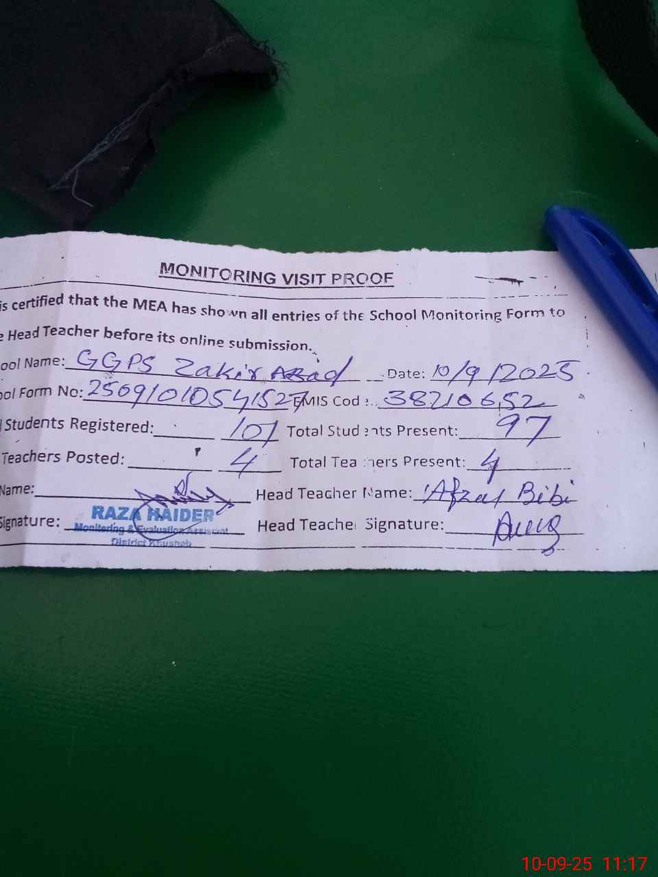 | EMIS Code: 38210652 | Name of School: GGPS ZAKIR ABAD HAMOKA | |||