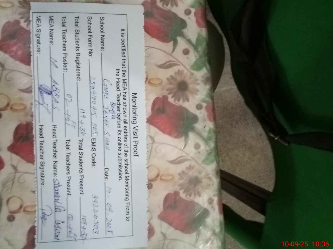 | Certified that this School was Inspected by the Undersigned MEA/DMO Today and the Information Stated Above is as Per Record. | |||||
